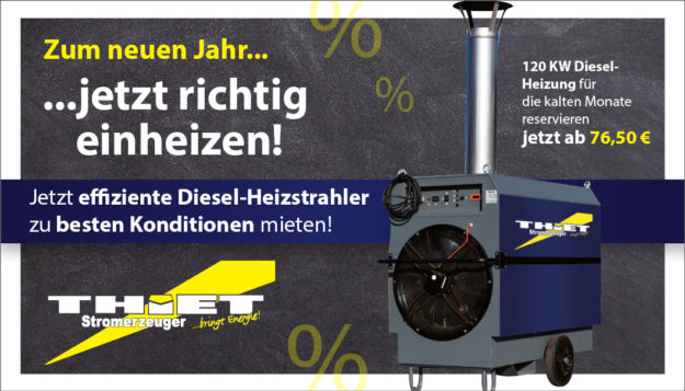 Zum neuen Jahr jetzt richtig einheizen! Mieten Sie effiziente Diesel-Heizstrahler – nur für kurze Zeit!