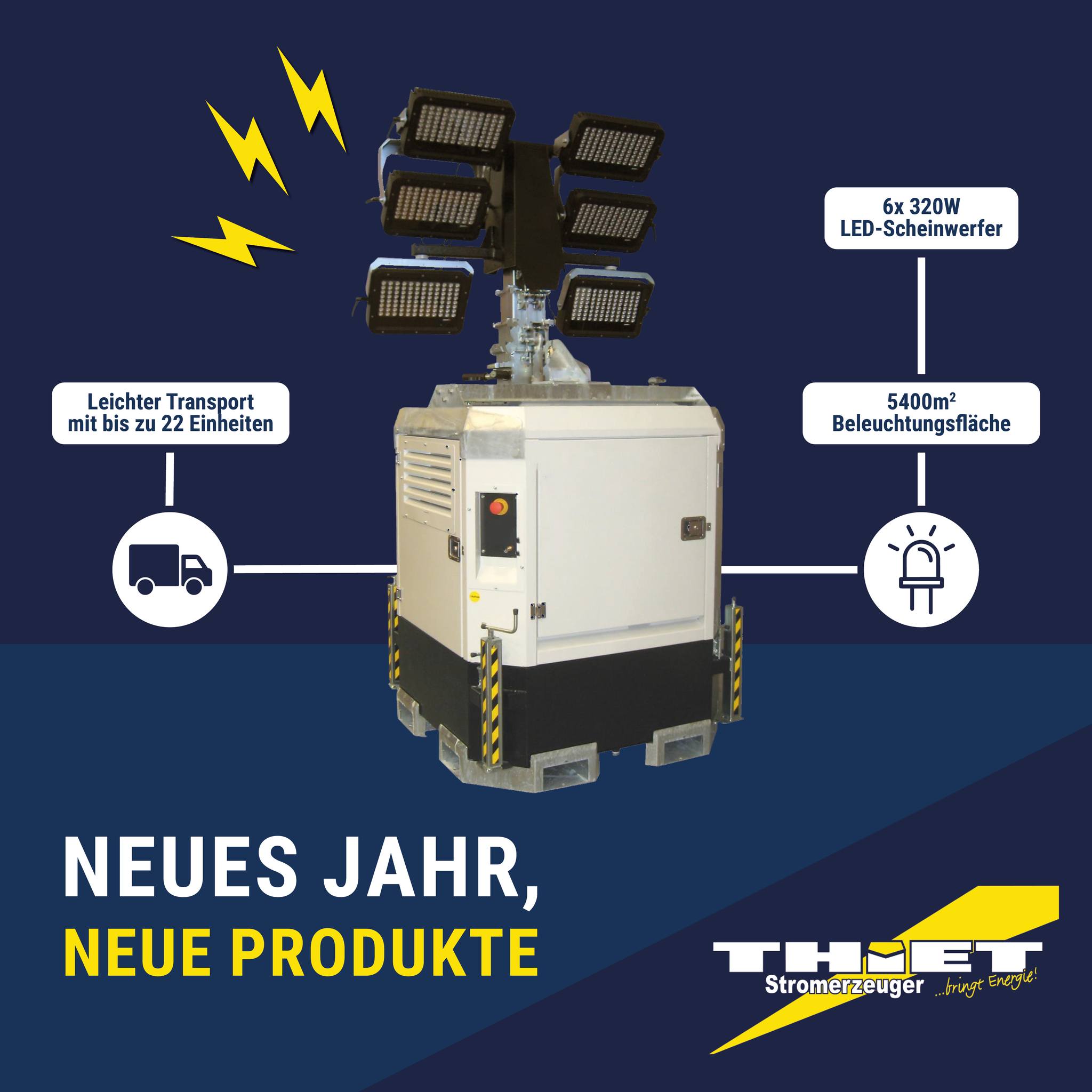 DetailsMobile Stromgeneratoren, Lichtmasten, Stromverteilungen mieten und kaufen.